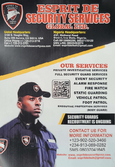 Esprit De Security & Investigative Services, Inc. strives and aspires to be the highest private security & Investigative company to reckon with in the States of Colorado, Texas, and California. We strive to exceed the expectations of our clients, affiliates, and those we partner with, by going above and beyond our contract compliances always.